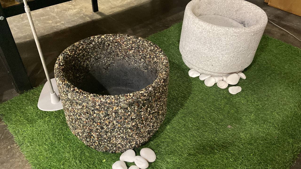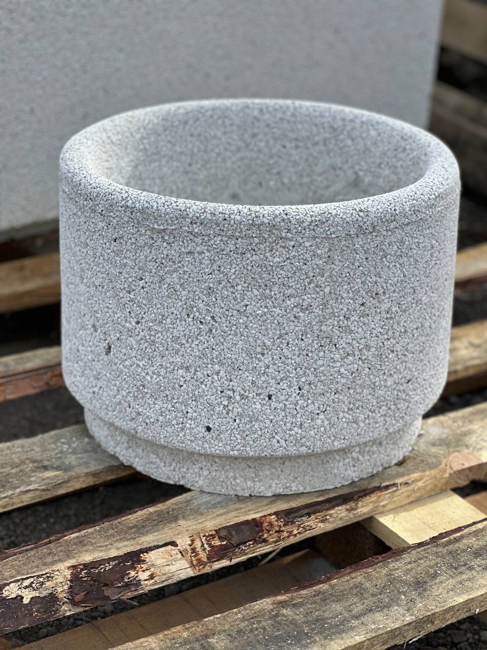 Размеры: диаметр 30см, высота 30см Вес: 33 кг Кол-во на паллете: 18 шт Вес паллета: 594 кг Цвет изделия: по согласованию с заказчиком. Оригинальный европейский вазон, легко вписывающийся в любой облик современного города, аккуратно подчеркивая все эстетические качества ландшафтного дизайна. Широкая цветовая гамма позволяет идеально подобрать цвет соответствующий окружающей среде. Идеально подходит для благоустройства городских площадей, парковых зон, а так же больших придомовых территорий. Техническое описание: Бетонно-монолитный вазон с фактурой из натурального камня. Изделие выполнено в виде цилиндра. Внешний фасад вазона имеет фактуру: мрамор , гранит, галька фракция от 3мм до 15мм или бетон, крашенный или пегментированный бетон. Идеально встает на ступени парадной лестницы (возможно крепление к ступеням).
